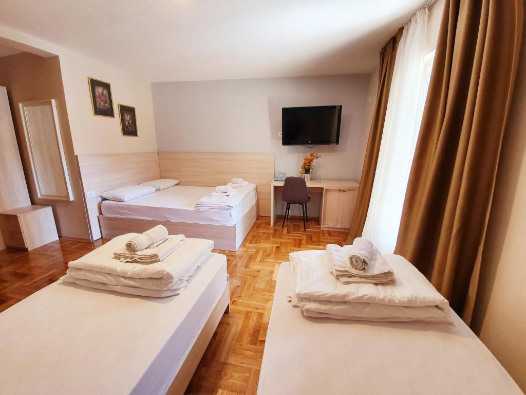 Pansion nudi sobe kao što je Standardna Dvokrevetna Soba sa Bračnim Krevetom/Zasebnim Krevetima i Balkonom, Apartman sa 2 Spavaće Sobe, Porodična Soba sa Pogledom na More i Trokrevetna Soba sa Terasom.