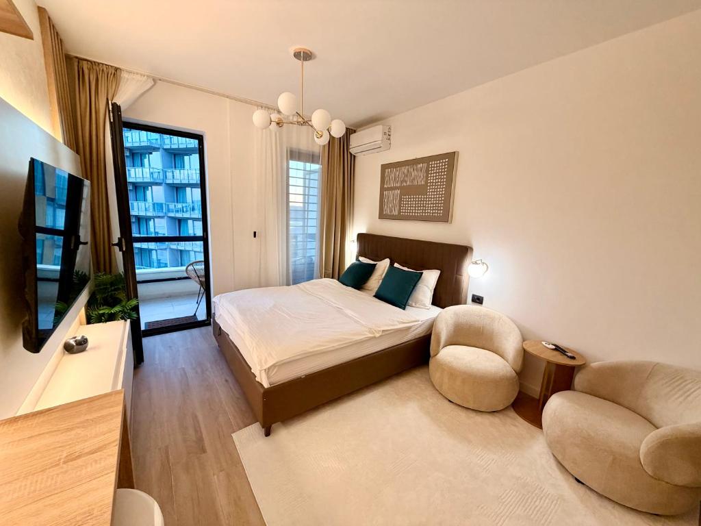 The pool with a view is a top feature of this apartment. The well-fitted kitchen has a stovetop, a refrigerator, kitchenware and an oven. The air-conditioned apartment features a flat-screen TV with streaming services, a washing machine, a private entrance, soundproof walls as well as sea views. The unit has 1 bed.