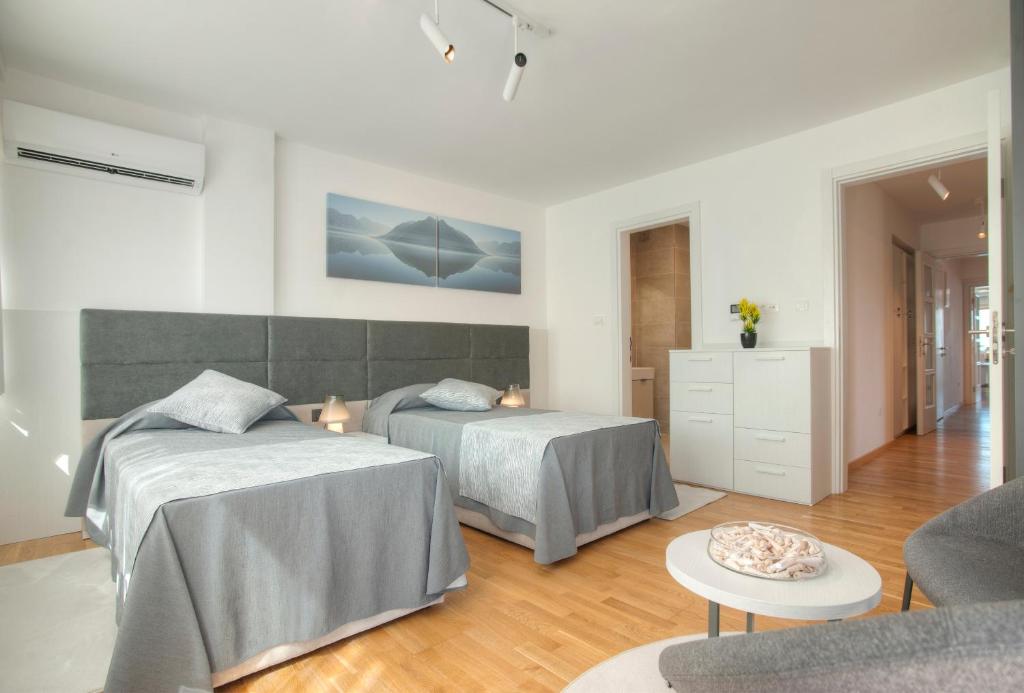 Boasting a private entrance, this air-conditioned apartment comes with 1 living room, 2 separate bedrooms and 1 bathroom with a walk-in shower and a bidet. Guests can make meals in the kitchen that features a stovetop, a refrigerator, kitchenware and an oven. The spacious apartment features soundproof walls, a tea and coffee maker, executive lounge access, a flat-screen TV with cable channels, as well as sea views. The unit has 4 beds.