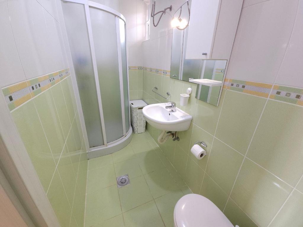 tuš, fen za kosu, peškiri/posteljina (uz doplatu), peškiri, toalet papir, šampon, sapun za telo, besplatni toaletni pribor