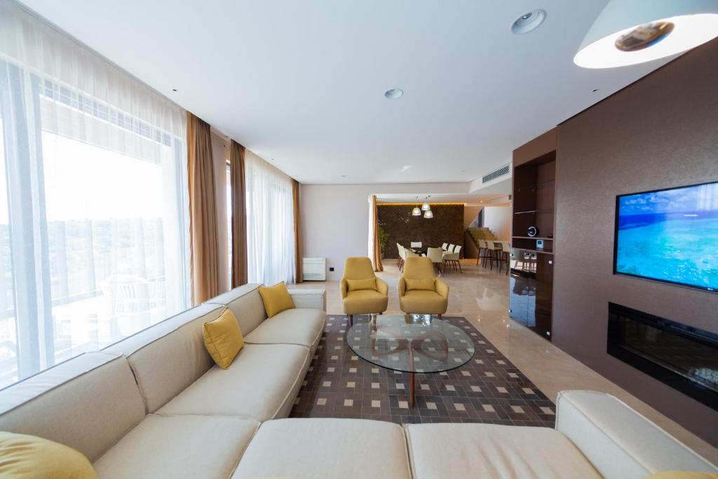 This luxurious villa offers a pool with a view, a hot tub and a sauna. This spacious villa comes with 1 living room, 4 separate bedrooms and 4 bathrooms with a shower and a hairdryer. The villa's kitchen, which has a dishwasher, is available for cooking and storing food. The air-conditioned villa features a flat-screen TV, a washing machine, a minibar, a coffee machine as well as sea views. The unit has 4 beds.